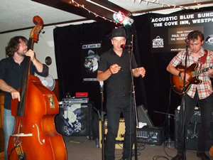 PAUL REDDICK (vocals & harmonica) & THE WEBER BROTHERS (Sam on guitar and Ryan on stand-up bass) provided another VERY special night of music at ACOUSTIC BLUE SUNDAY at THE COVE INN, Westport August 12th. These guys play like they've been together for years. Juno and W.C. Handy Award nominee Paul with two members of Ronnie Hawkins current band - either artist was worth the price of admission by themselves. Together - fabulous! Still a light turnout for this Summer Series unfortunately. Maybe people don't realize the calibre of the talent that is performing? They are truly some of Canada's best. Hope it improves for the remaining two this season or ACOUSTIC BLUE SUNDAYS will not be back next summer - which would really be too bad for Westport.But we can't afford to bring in this quality of talent without good turnouts- use it or lose it as they say. So spread the word Blues fans and book your tickets for the remaining shows now. |