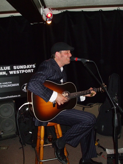 STEVE STRONGMAN - the fabulous singer, songwriter, harmonica player and guitarist (Maple Blues Award winner for Guitarist Of The Year in 2011) from "Steeltown" Hamilton kicked off the first ACOUSTIC BLUE SUNDAY Dinner & Show at THE COVE INN in Westport for this season on June 24th and treated everyone who was there to a wonderful night of blues. The audience was a little small for the first show of the year but hopefully that will change as word gets out about how great these nights are. Those who came really enjoyed themselves though judging by the number of CD's Steve sold at the Show along and the Standing Ovation he got at the end of the night. The audience particularly enjoyed the songs off his great new CD "A Natural Fact" The Cove served up a tasty buffet dinner as always. $200 was donated to Westport's upcoming Canada Day Celebrations at Lions Club Park. |
